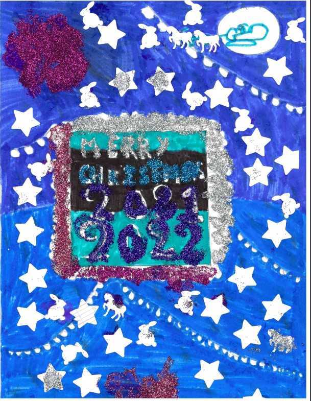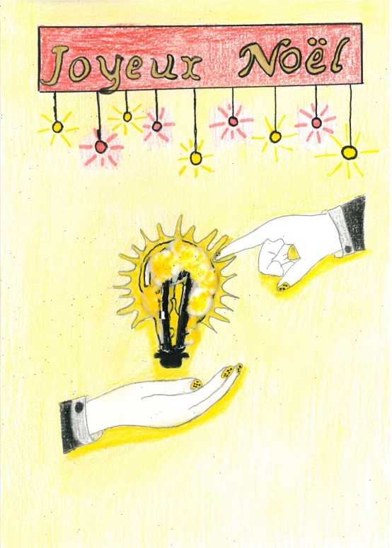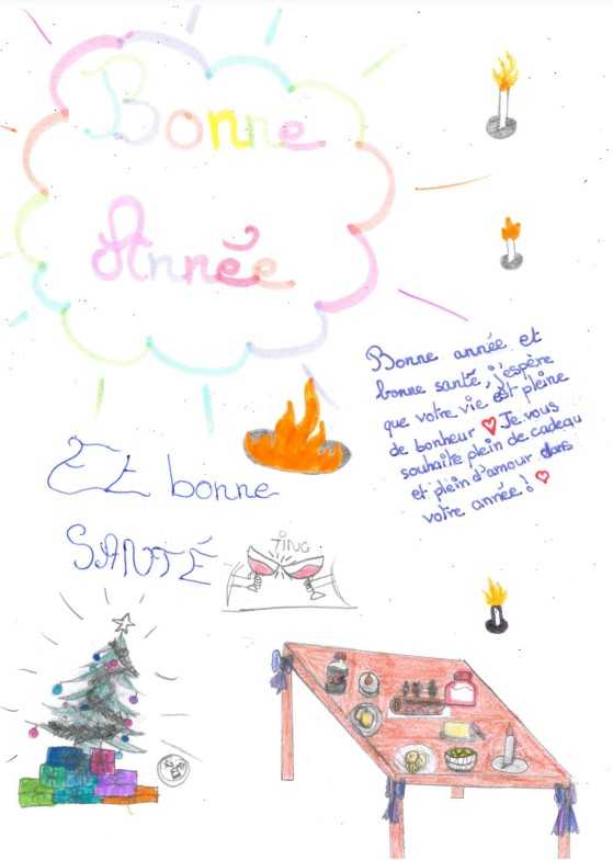 Une carte de vœux a été sélectionnée parmi les 16 créations des élèves du collège (vote des délégués de classe).