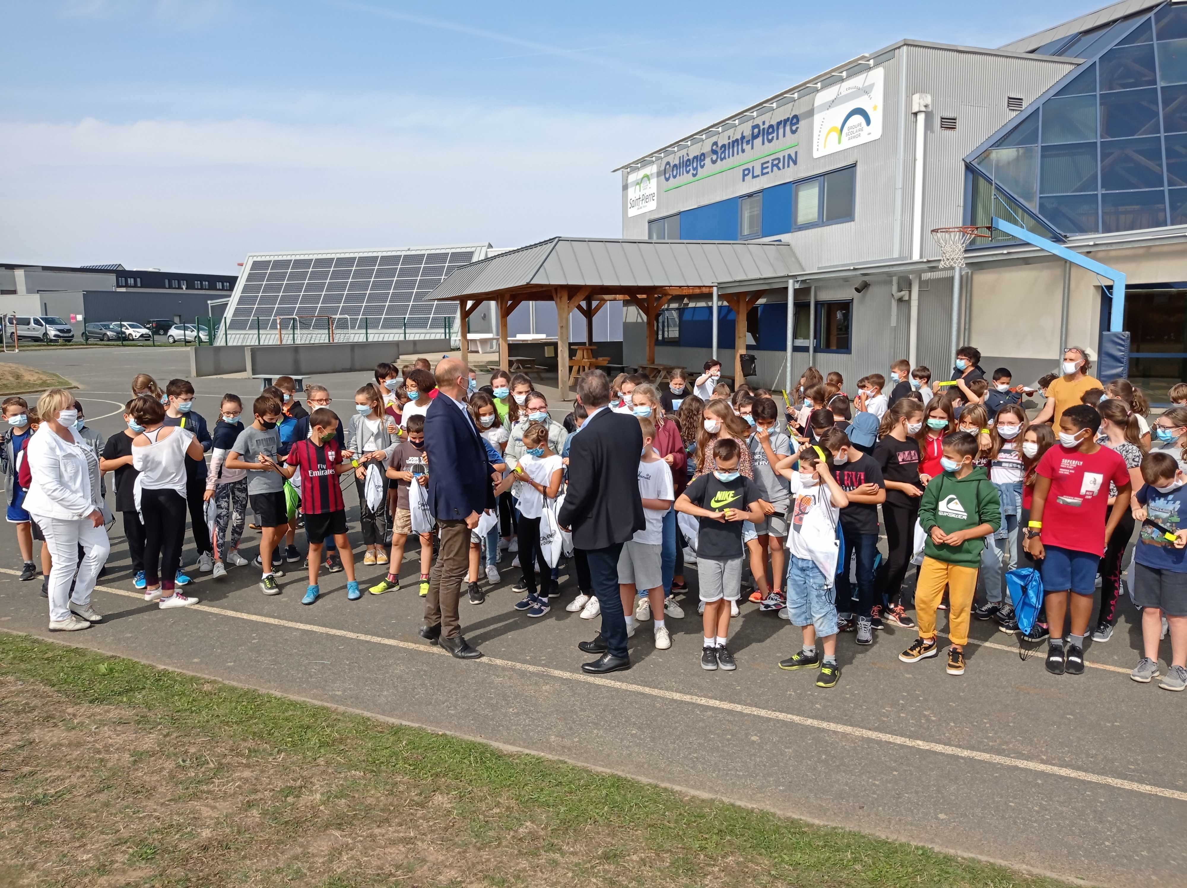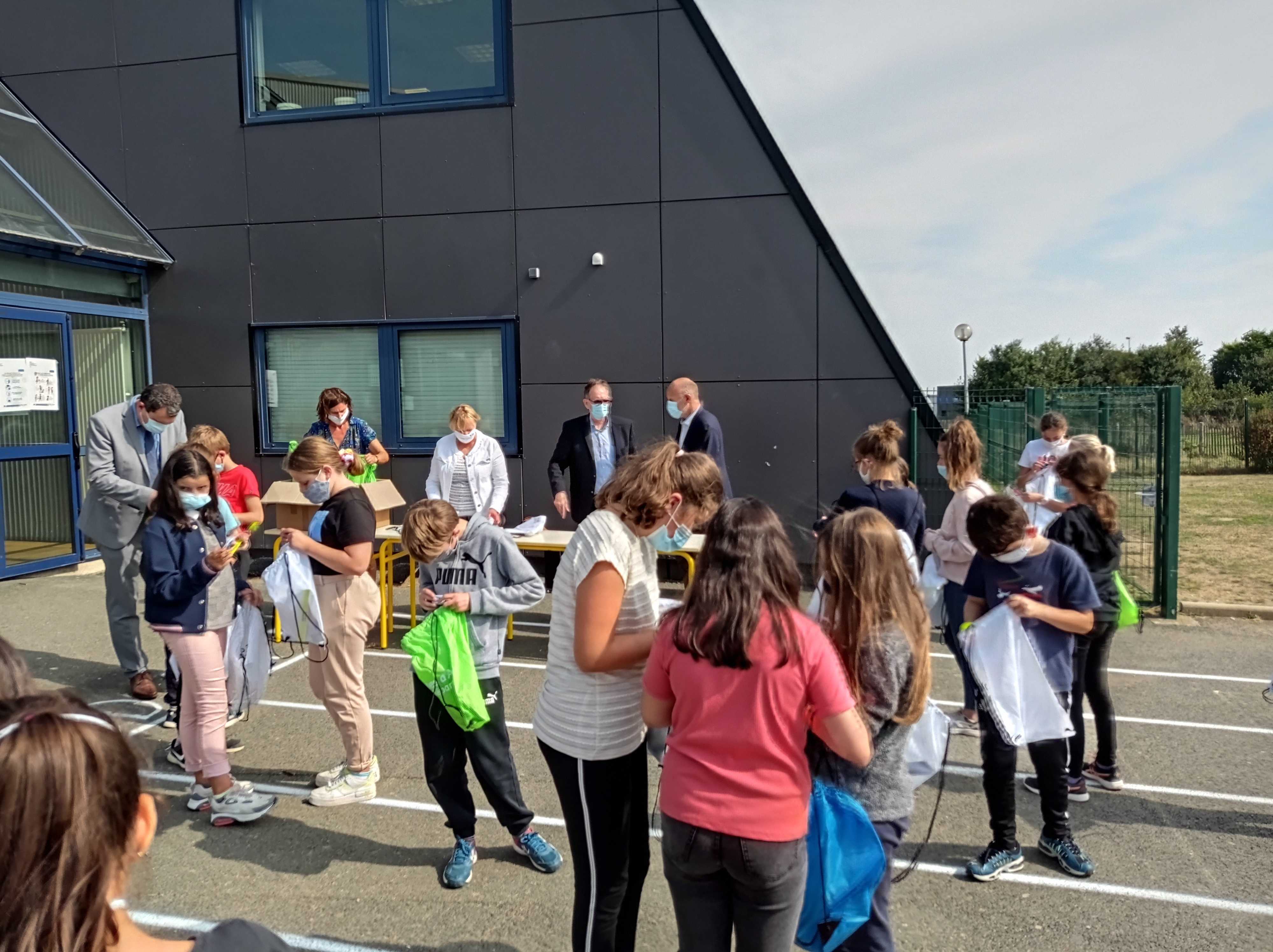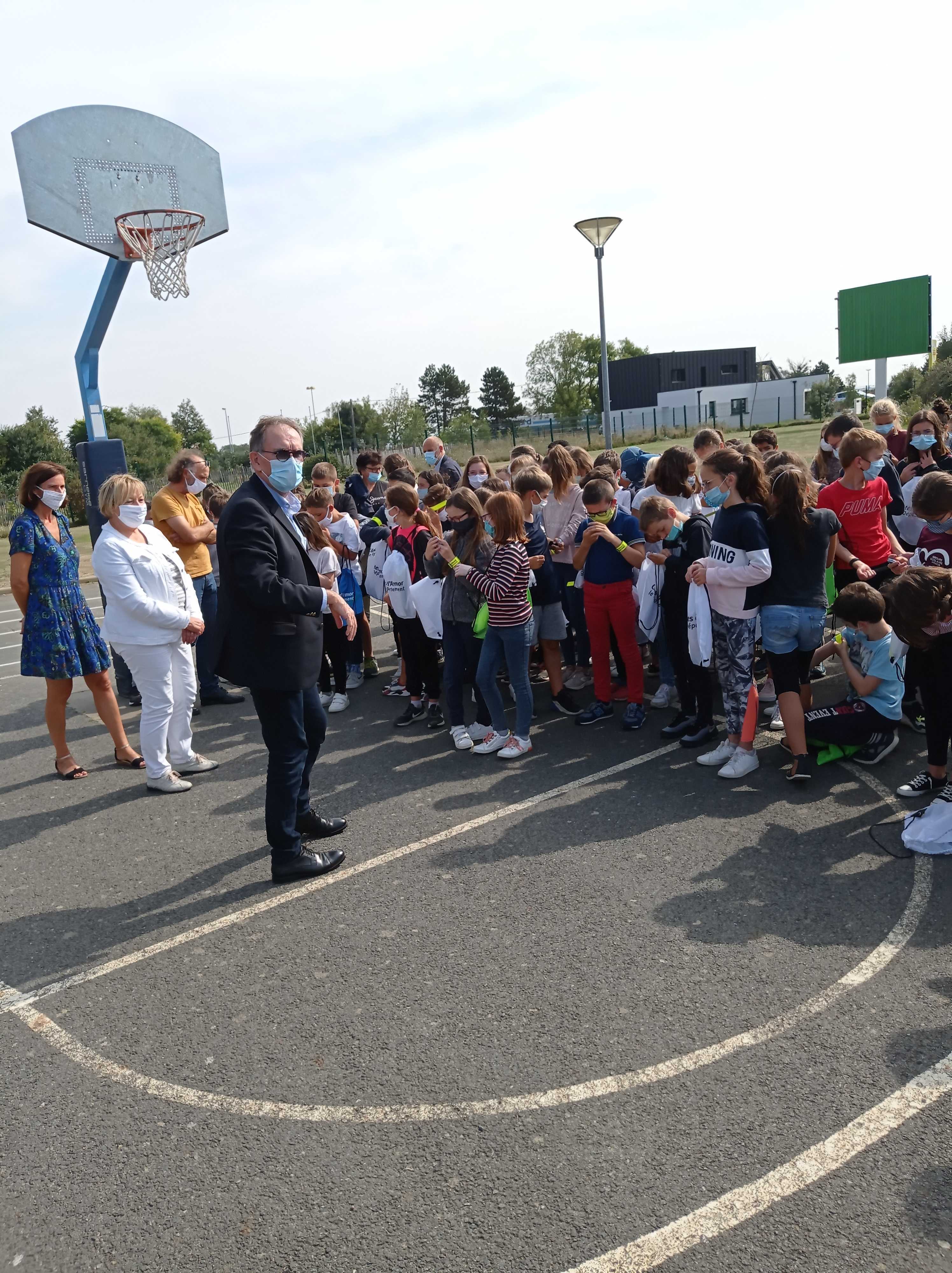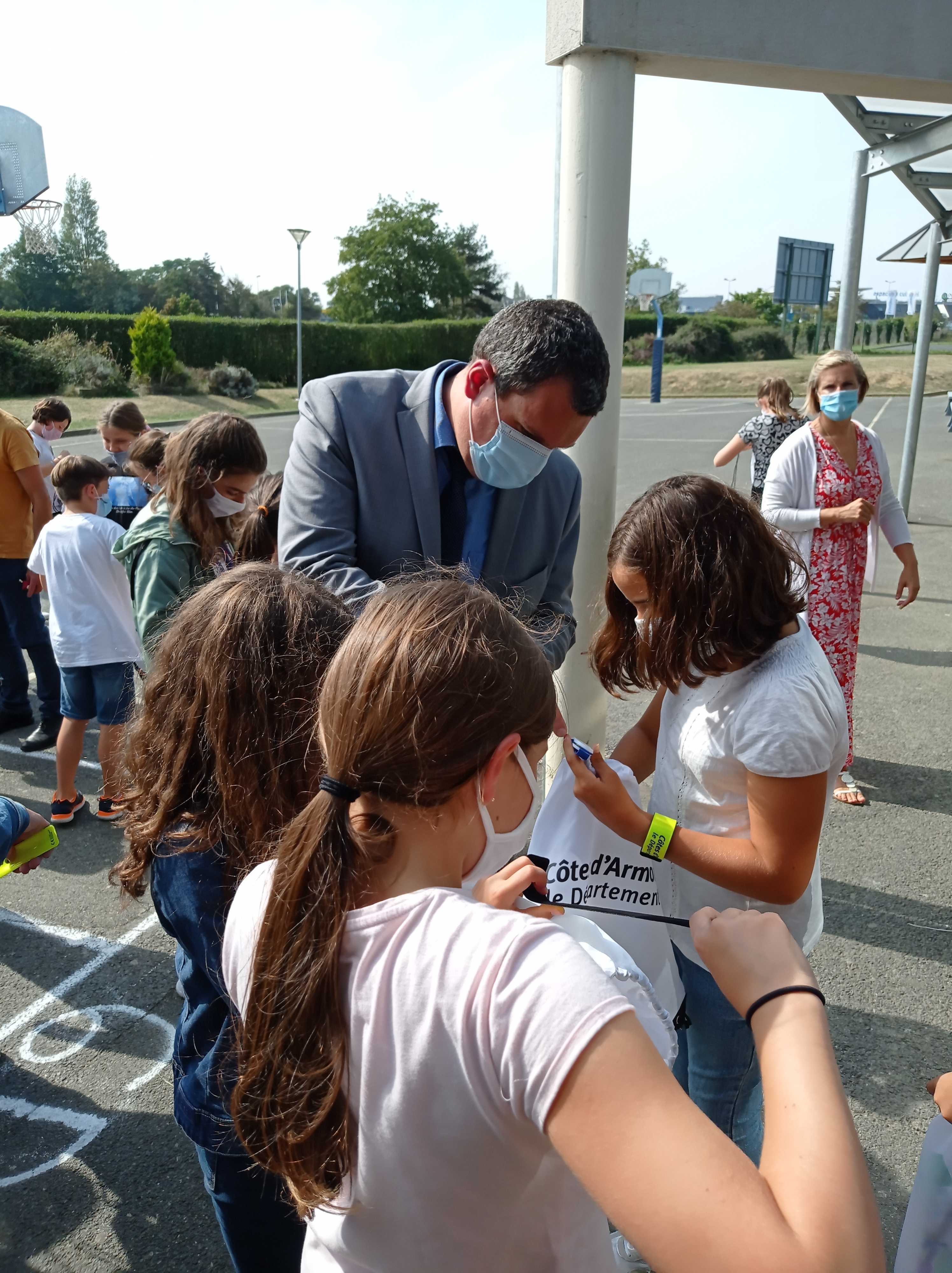 Alain CADEC, président du conseil départemental était présent dans nos locaux vendredi 18 septembre à offrir à nos élèves de 6ème un kit de sécurité routière qui doit leur permettre de mieux voir et d’être vus sur le chemin du collège.