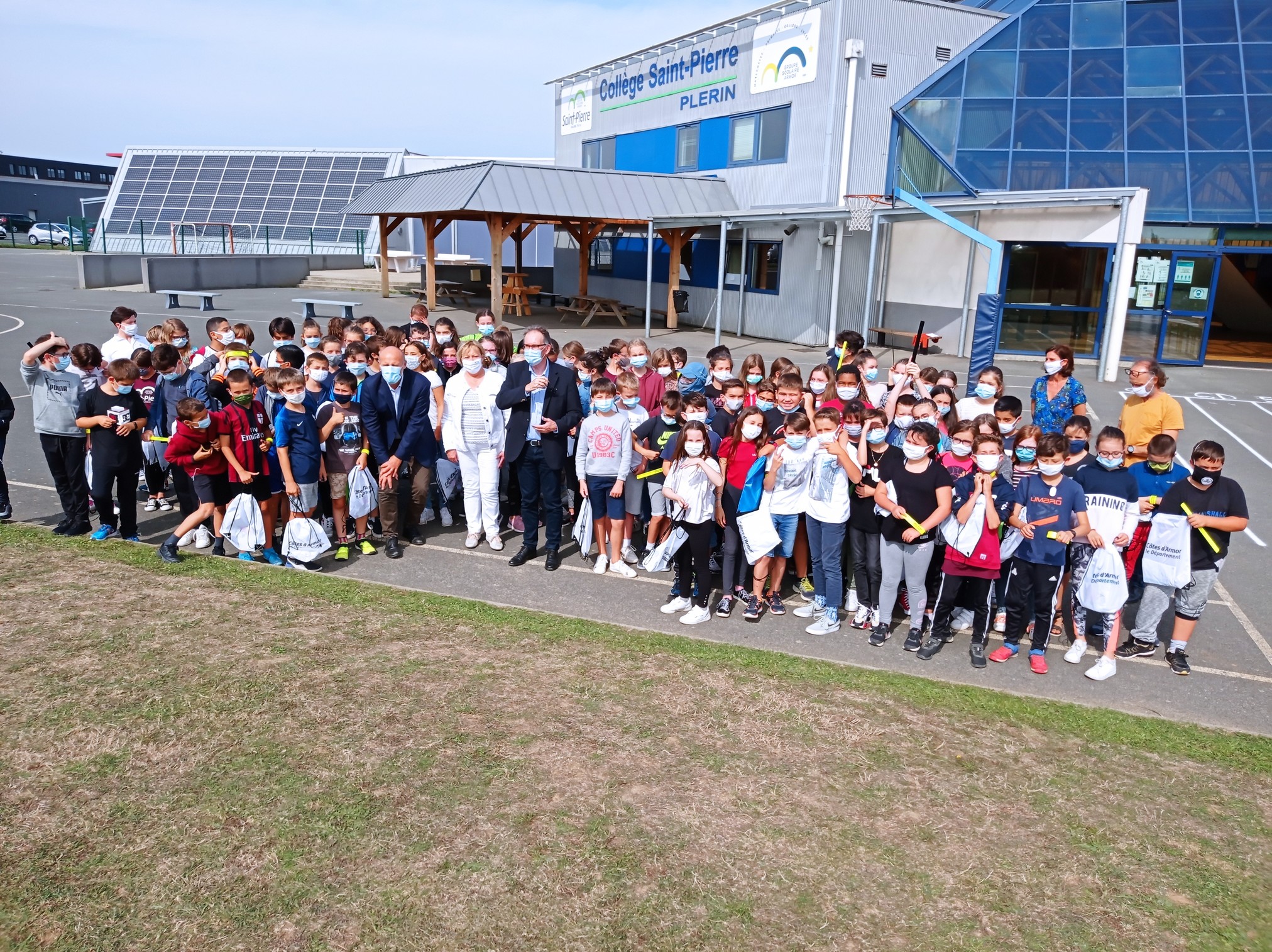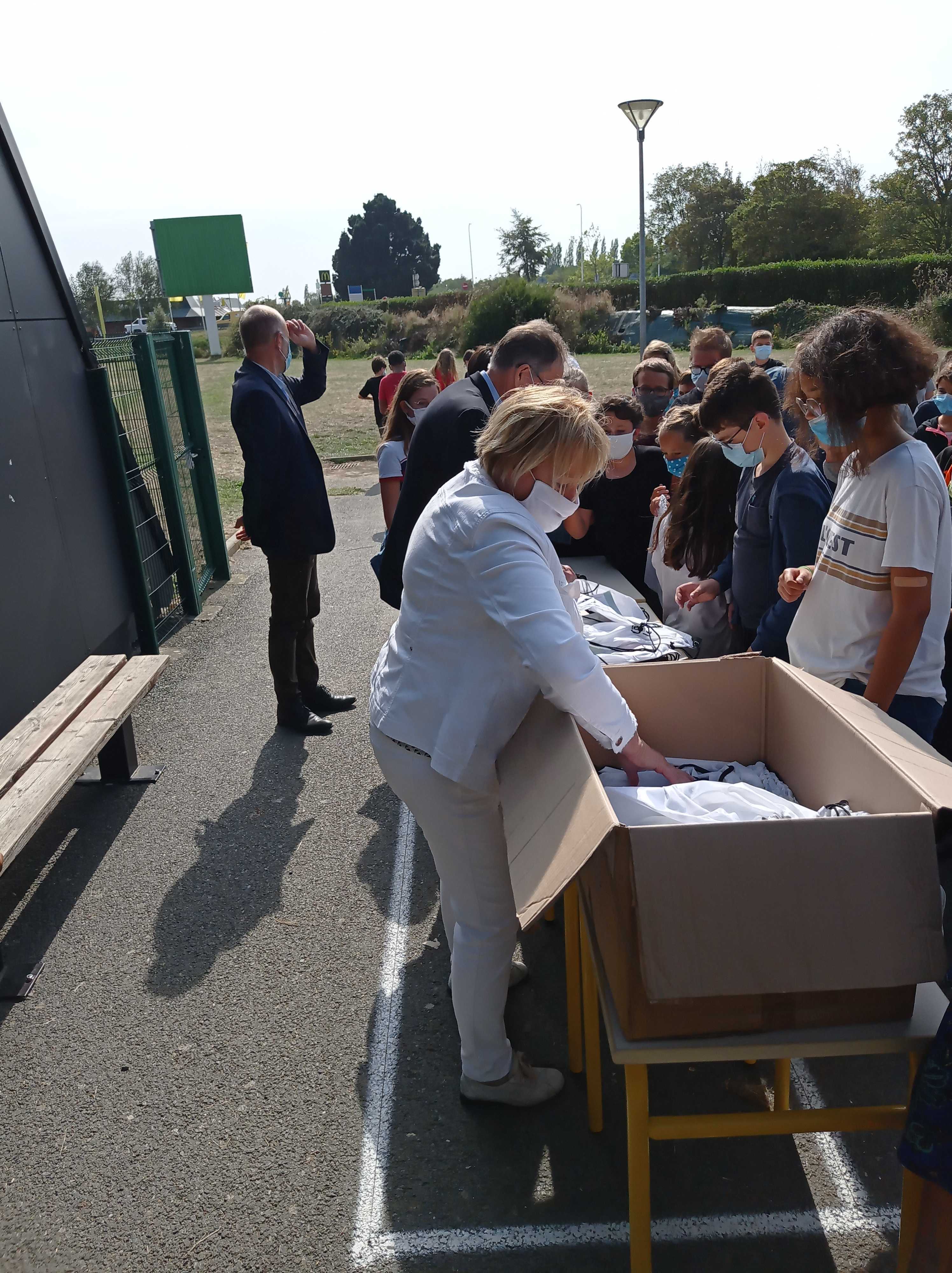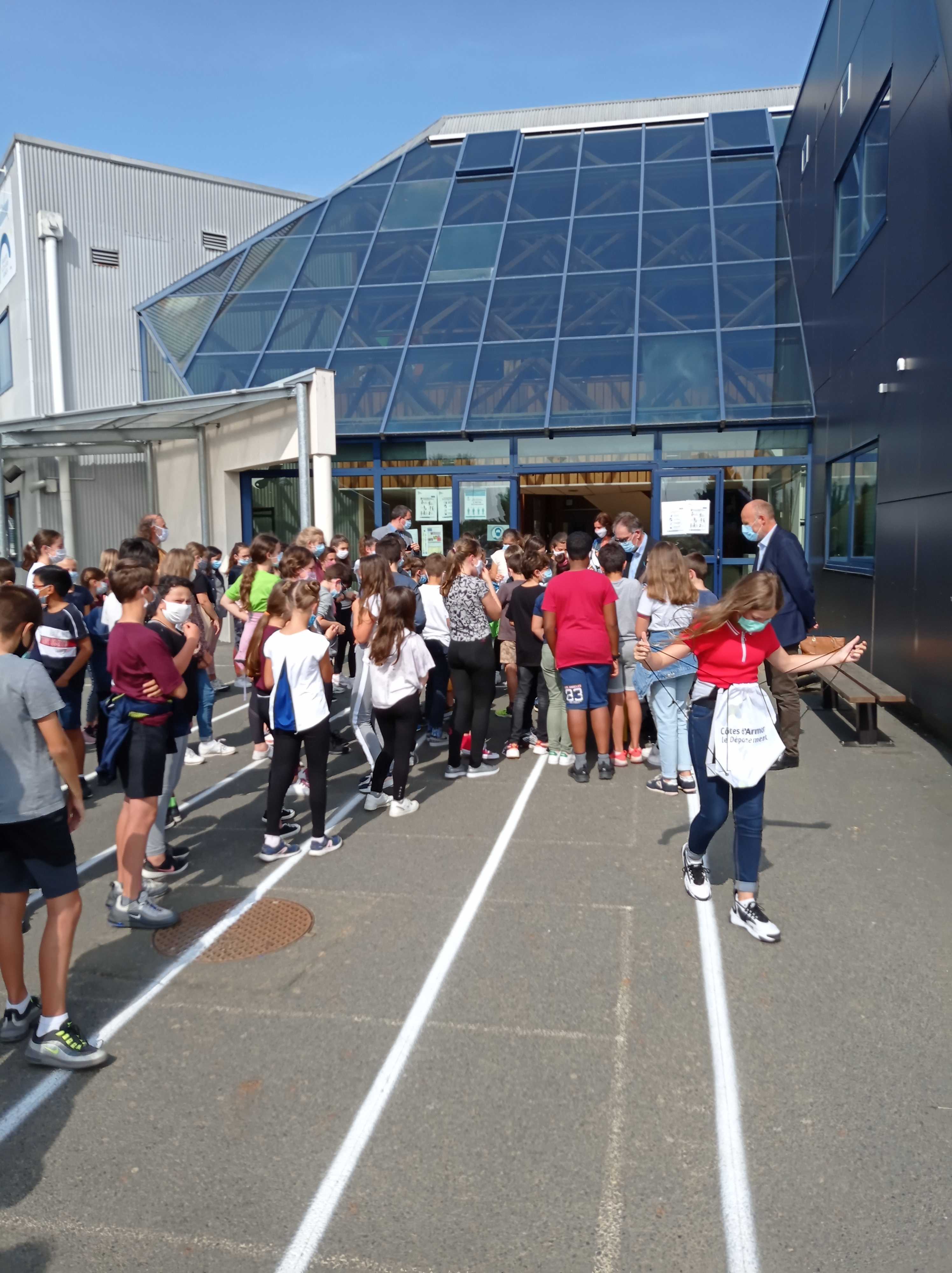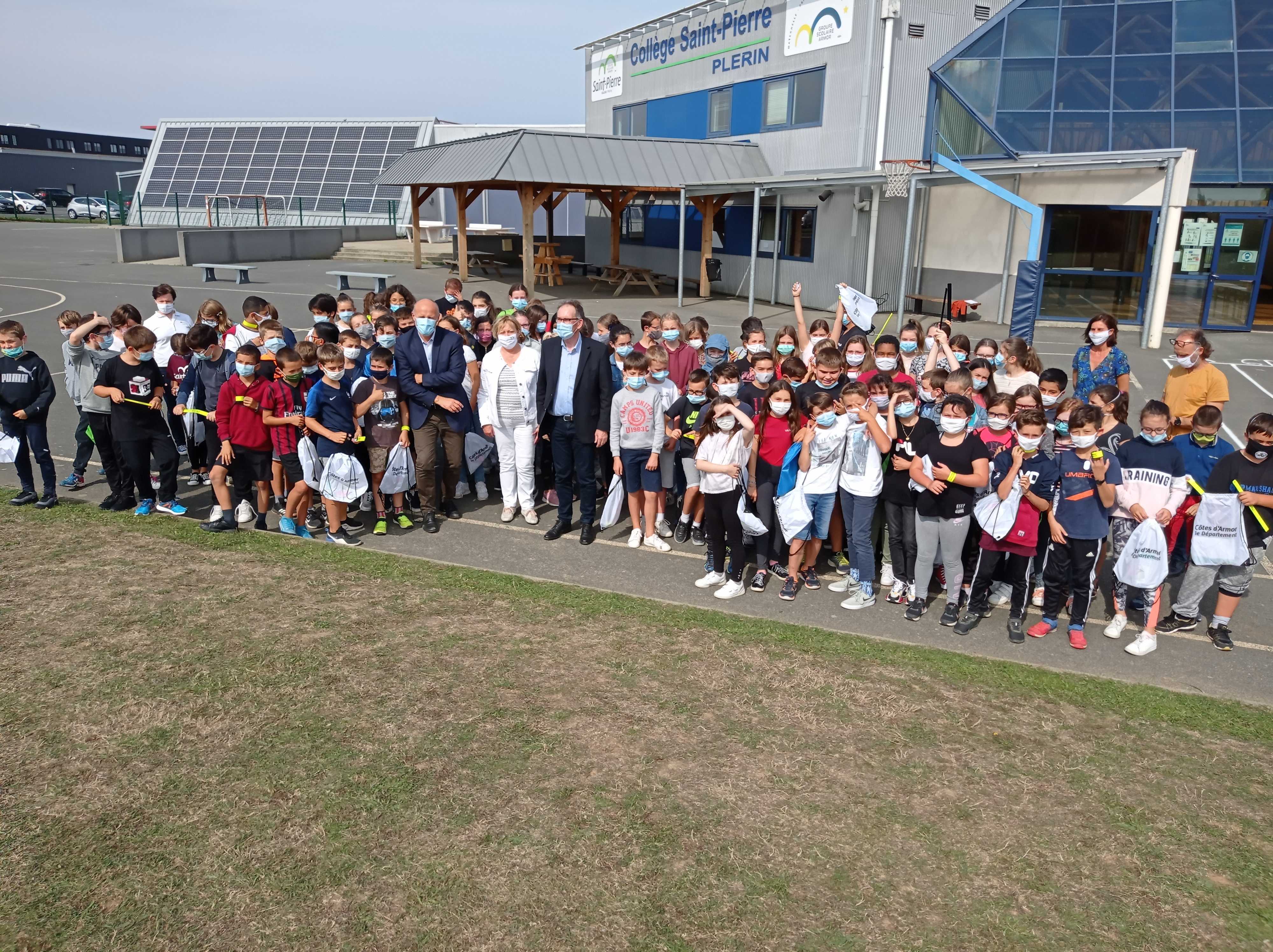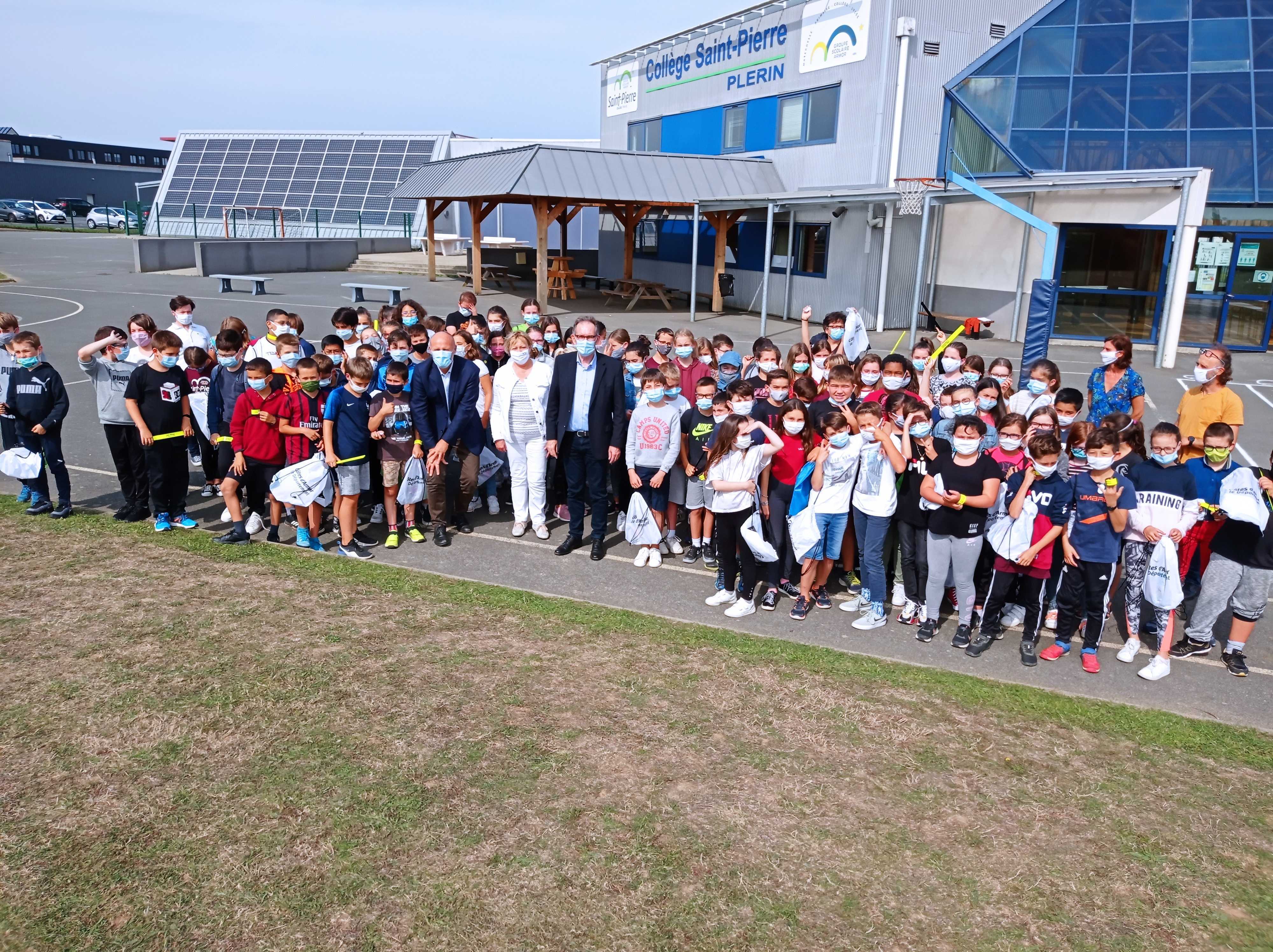 Alain CADEC, président du conseil départemental était présent dans nos locaux vendredi 18 septembre à offrir à nos élèves de 6ème un kit de sécurité routière qui doit leur permettre de mieux voir et d’être vus sur le chemin du collège.