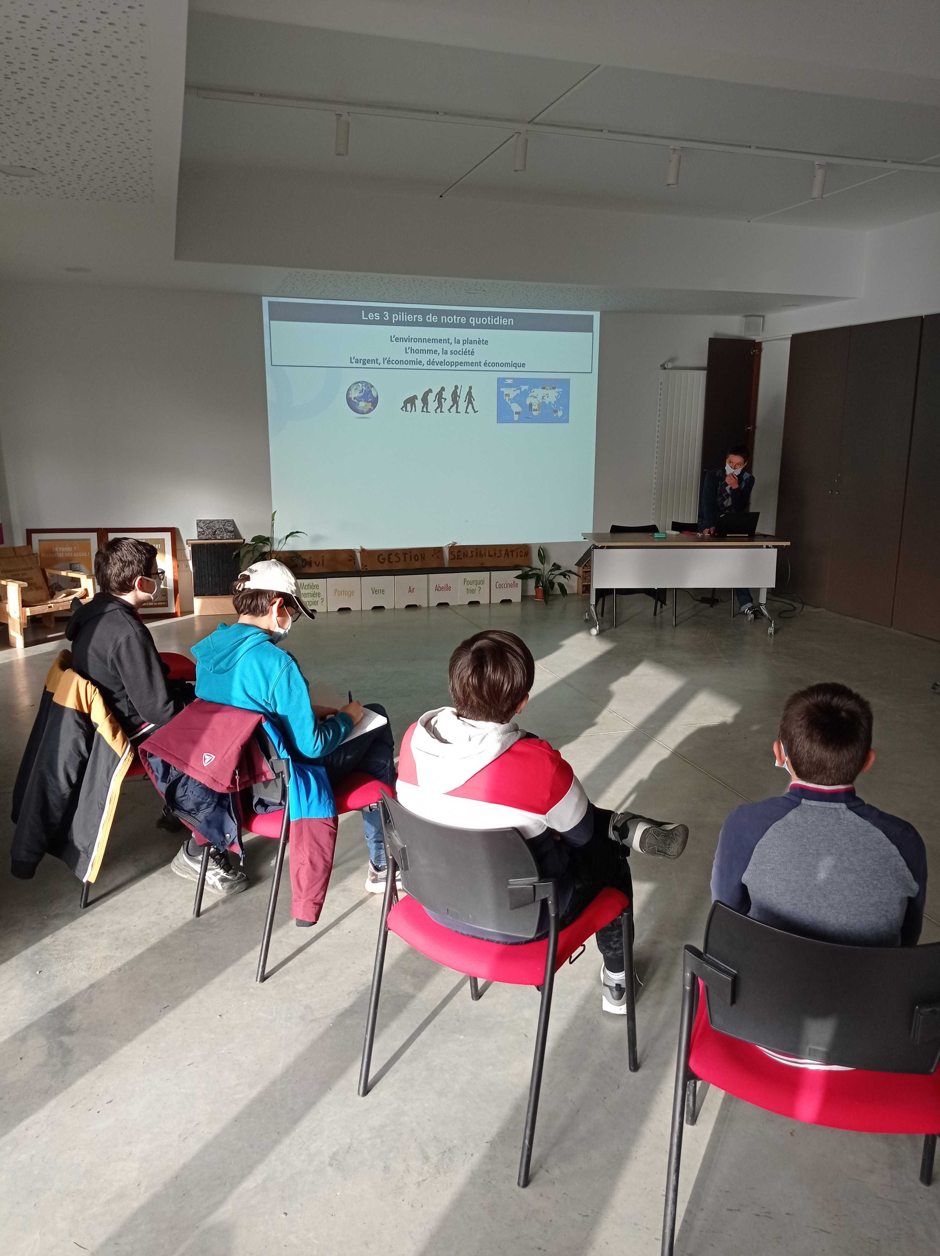 Les élèves de l'atelier développement durable ainsi que les éco délégués de 6e et 5e ont découvert le temps d'une journée la Maison de la Terre à Lantic.