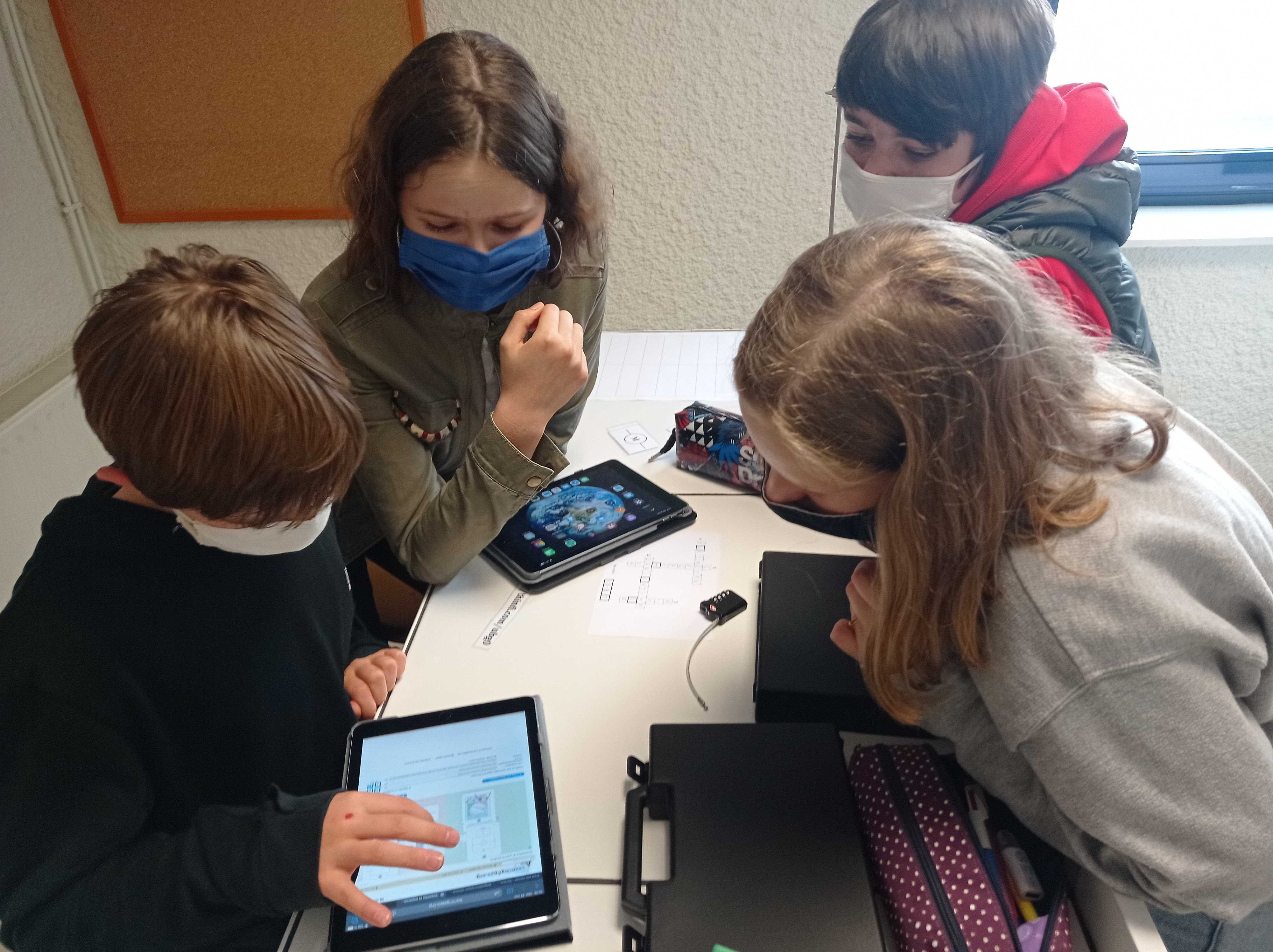 A partir de plusieurs énigmes, de mots de passe ou codes à trouver pour ouvrir des mallettes, de montages et d'applications sur tablettes à réaliser, ouf, ils sont tous sains et saufs ! Vive les sciences !» Mme Hay