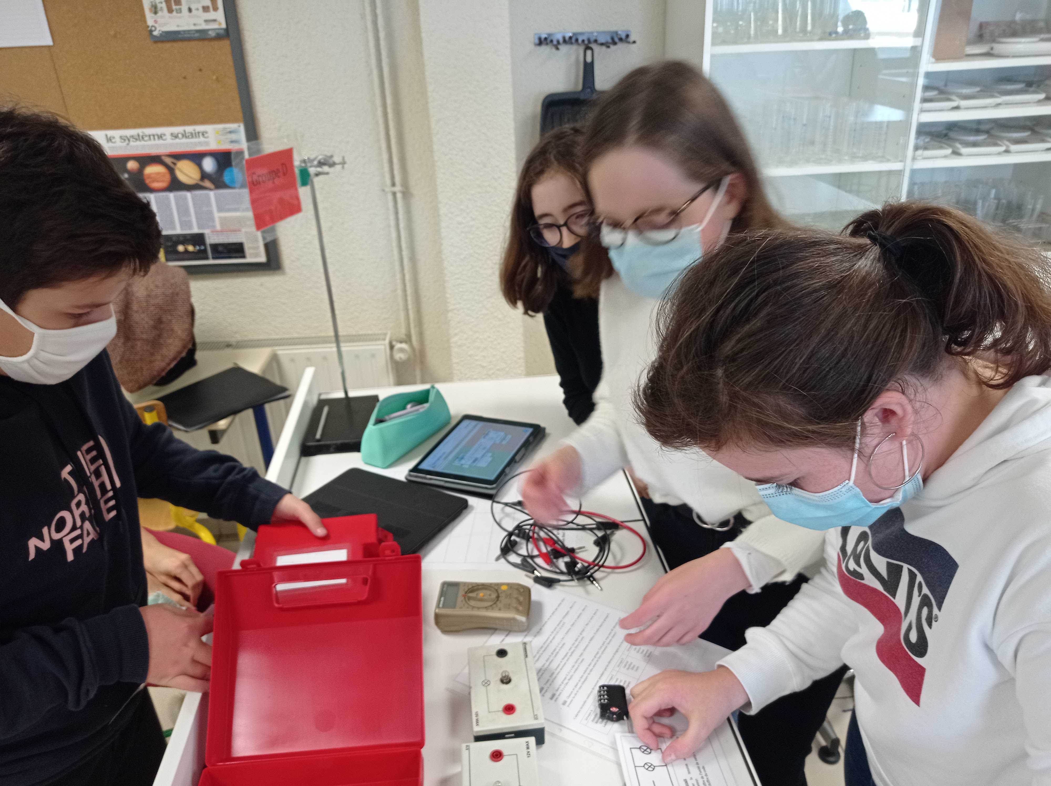 « Afin de clore la séquence "Electricité", les 4èC ont participé à un Escape Game cette semaine : alarme incendie au labo, vite il faut s'échapper, mais où est cachée la clé ? Un buzzer leur rappelle toutes les minutes que le temps est compté....